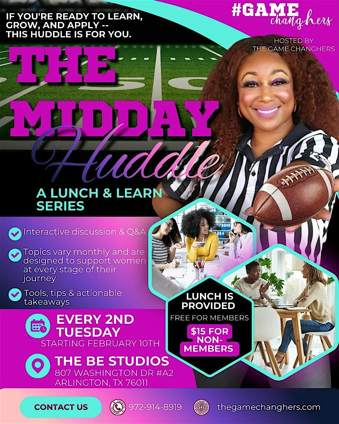 Our "Midday Huddle Lunch & Learn Series" are part of The Game ChangHERS mission to educate, equip, and empower Christian women in business through consistent, accessible, and affordable training.