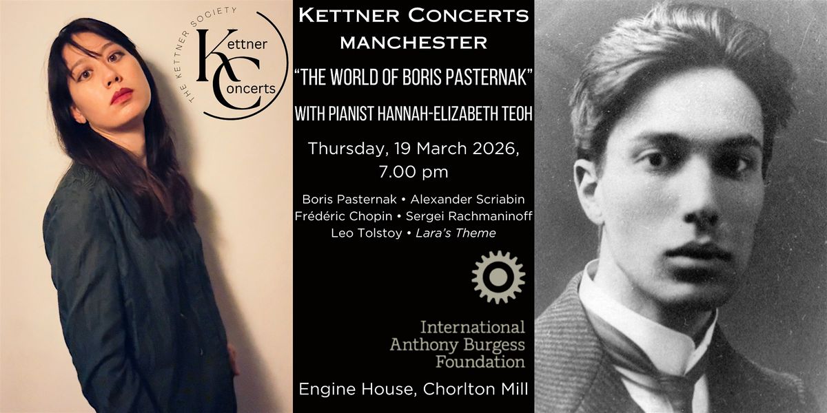 Celebrated as the Nobel Prize awarded author of Doctor Zhivago and one of Russia's most beloved poets, Boris Pasternak's first love was music. Raised amongst the Russian elite, his mother was a renowned concert pianist, and Scriabin and Rachmaninoff were regular household visitors. As a teenager Pasternak was an accomplished pianist with aspirations to become a composer; this concert provides a rare opportunity to hear his only surviving works.