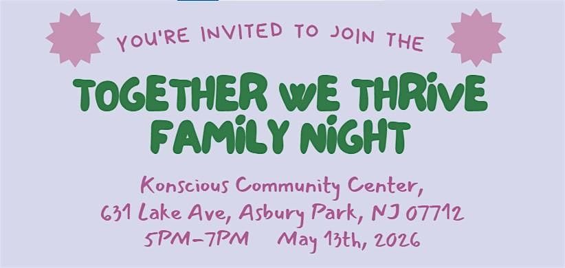 Join us for Together We Thrive Family Night – a vibrant evening of connection, wellness, and community joy! This free event is open to all families and children and will feature interactive workshops, activities that build family wellness, and child care support.