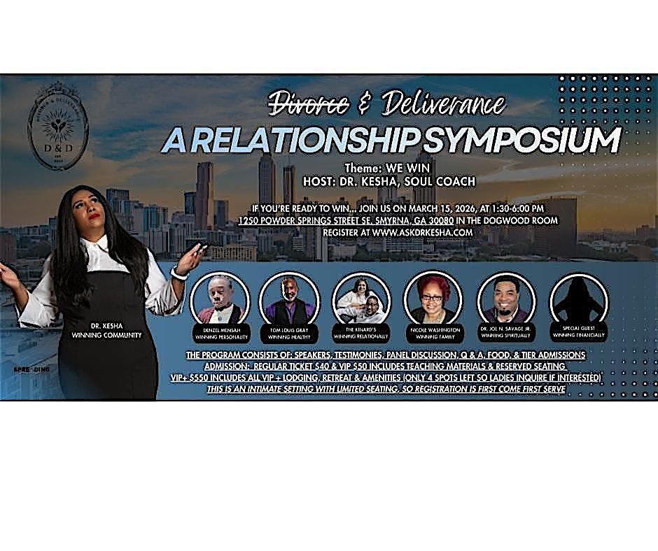 Join Dr. Kesha, Founder and Soul Coach & Special Guests, for the 9th Annual Divorce & Deliverance: “A RELATIONSHIP SYMPOSIUM.”
