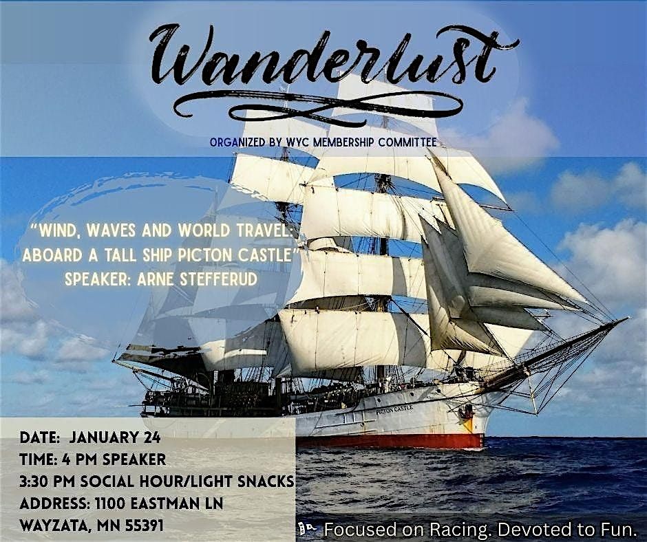 Set sail with us for an inspiring afternoon at the Wayzata Yacht Club for a special presentation. Join us as Arne Stefferud shares the extraordinary story of sailing around the world aboard the tall ship Picton Castle, turning a lifelong dream into reality. His journey brings to life adventure, courage, and the magic of true blue-water sailing.