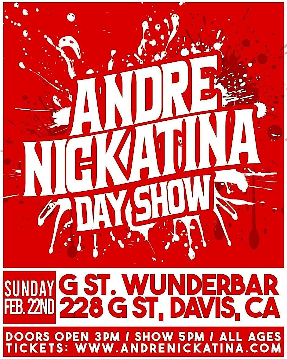 Get ready for an awesome in-person experience with Andre Nickatina live at G St. Wunderbar Davis! This day show brings all the good vibes and killer beats you love. Grab your friends, soak up the atmosphere, and enjoy some unforgettable tunes in a chill setting. Don’t miss out on this epic event!