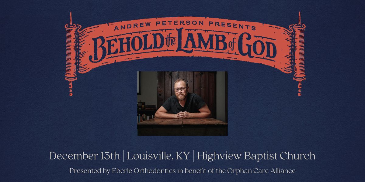 Join storied Nashville singer-songwriter and author Andrew Peterson as he presents the Advent song cycle Behold the Lamb of God: The True Tall Tale of the Coming of Christ. Now in its 22nd year, Behold the Lamb will feature an all-star cast of Nashville songwriters and session musicians. The concert brings the singing and playing of Peterson's original folk-roots infused rendition of the Christmas story as it is foreshadowed in the Old Testament and brought to bear in the New. The tour is sponsored by International Justice Mission and will be at Highview Baptist Church in Louisville, KY on December 15, 2022 at 7:30 pm.