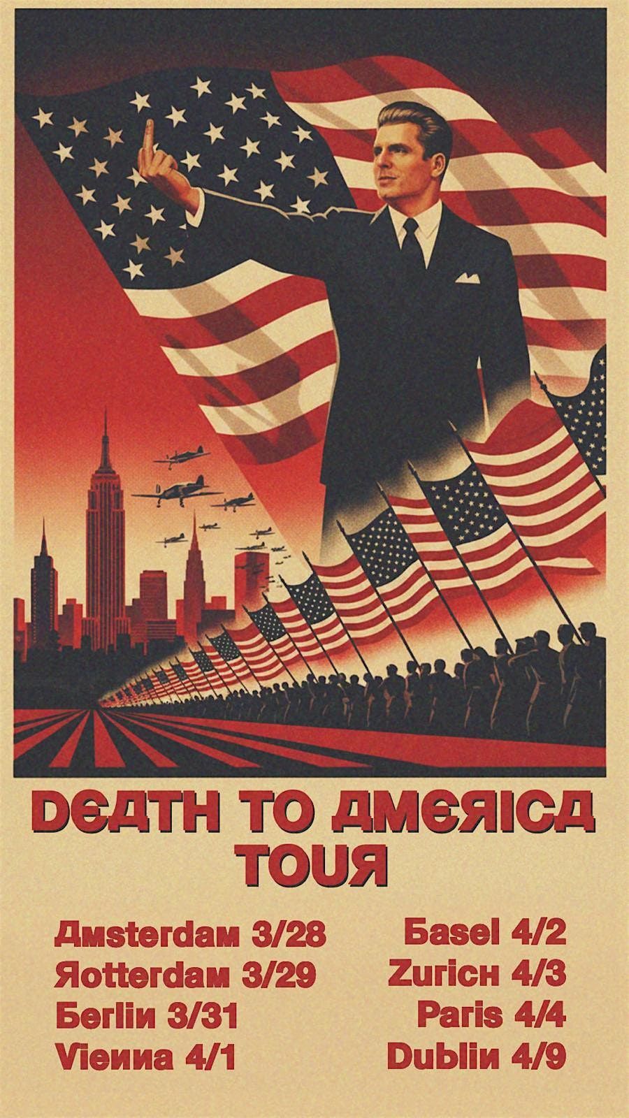Death to America Tour: and the hour is about becoming a father during the end of America. I explore the fear of having a young child, how to raise her right despite everything being pointless and my disdain for American culture and modern masculinity.