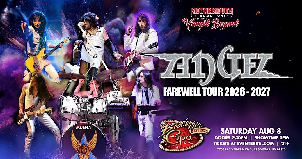 Don't miss rock band Angel on their farewell tour performing live in Las Vegas at Copa Events Center next to the famous Bootlegger Italian Bistro. Employing a dazzling mix of glam, rock, hard rock and progressive rock, Angel's outrageous, white satin heavy image and equally over the top stage shows made them one of the more colorful arena rock bands of the 70's & early 80's.