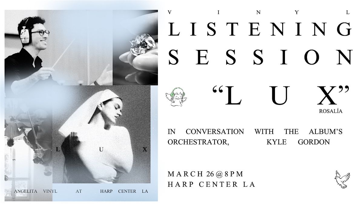 Join us for our third "angelita vinyl" event: a listening club highlighting albums that feature jazz and classical instruments. For this session we are celebrating Rosalía's latest album, "Lux," a magnetic exploration of sound and storytelling written in four movements. Distinctly different from 2022's "Motomami," this album takes inspiration from various female saints throughout history, sharing Rosalía's connection to their stories in 18 songs, written in 13 different languages, and recorded with the London Symphony Orchestra.