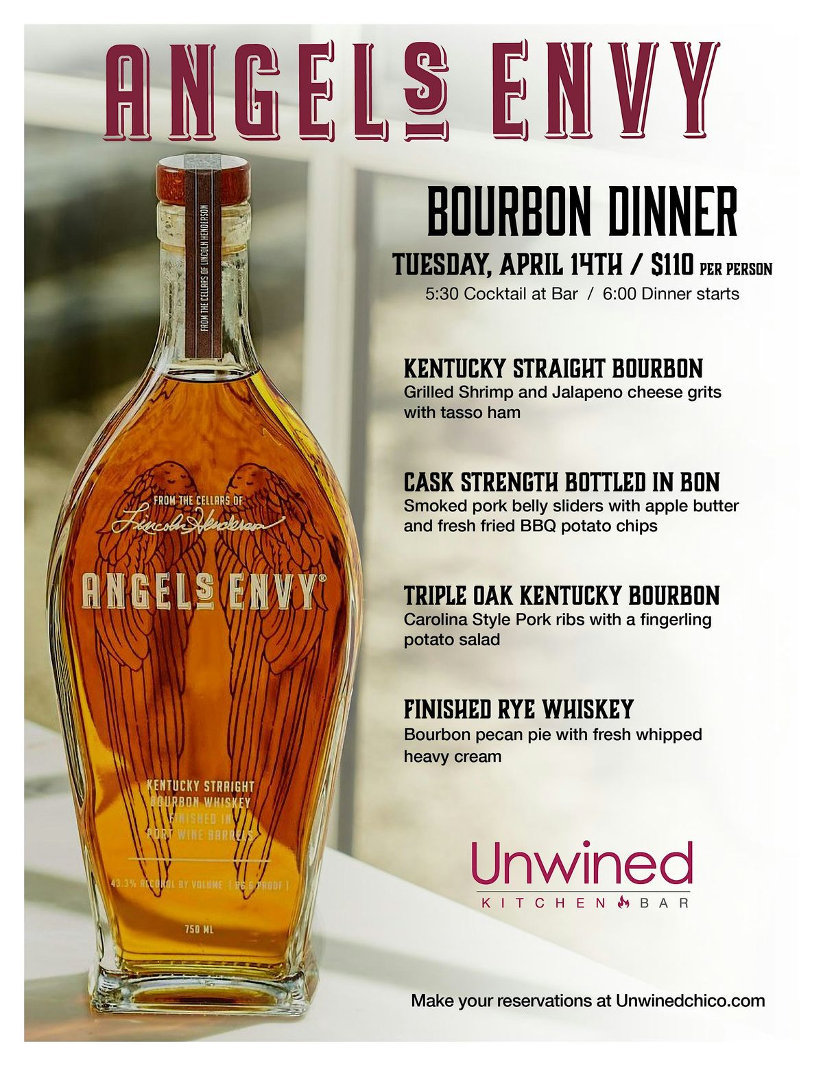 Join us for an unforgettable in-person evening filled with rich flavors and great vibes! Dive into the world of Angel's Envy Bourbon as we pair each pour with delicious bites crafted to complement every sip. It's the perfect chance to savor fantastic bourbon, enjoy tasty food, and hang out with fellow bourbon lovers. Don’t miss this unique tasting experience that promises fun, flavor, and a cozy atmosphere!