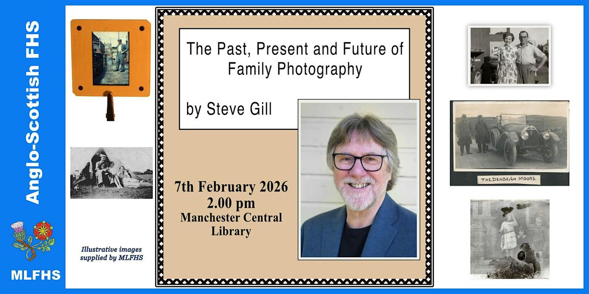 Family photographs are precious, whether they are damaged glass plates, faded colour images from the 1960s, or hundreds of snaps taken with our mobile phones. Steve Gill is a professional photographer and image restorer, fully qualified to advise on good practice when caring for or restoring older images, and also fully conversant with AI, its benefits and limitations, and how best to use AI to identify details in old photographs. There may also be advice on using AI to enhance images. Whether you have specific questions or just want to learn more generally, this talk will will appeal to all. (Note: the images above are added from volunteers' collections for illustrative puposes only).