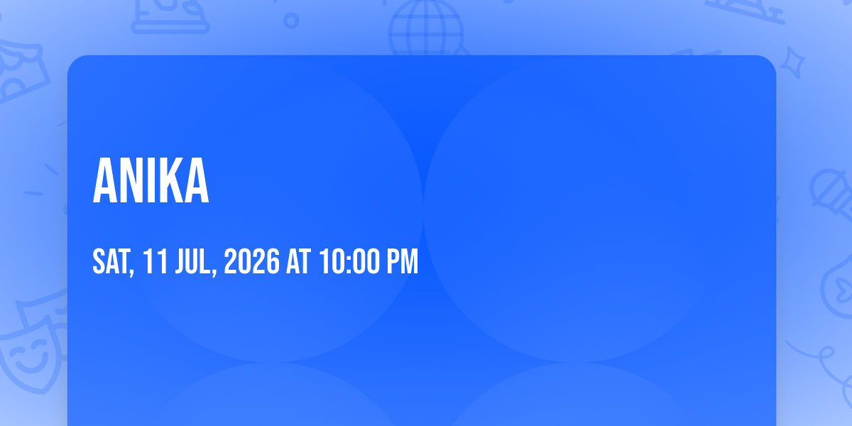 π Location: 40.738, -73.9829β¨ Discover the extraordinary at Anika, where magic meets reality in ways you've never imagined! ποΈ Set in Gramercy Theatre nestled in bustling New York, NY, this event promises to be a landmark occasion. π Taking place on July 11th, 2026 at 10:00 PM, it's going to create an atmosphere where every moment becomes a cherished memory. π Immerse yourself in an experience crafted with attention to every detail, designed to surprise and delight at every turn. They have worked tirelessly to ensure this event exceeds all expectations, bringing together elements of entertainment, innovation, and pure joy. π Don't miss your chance to be part of this remarkable journey!