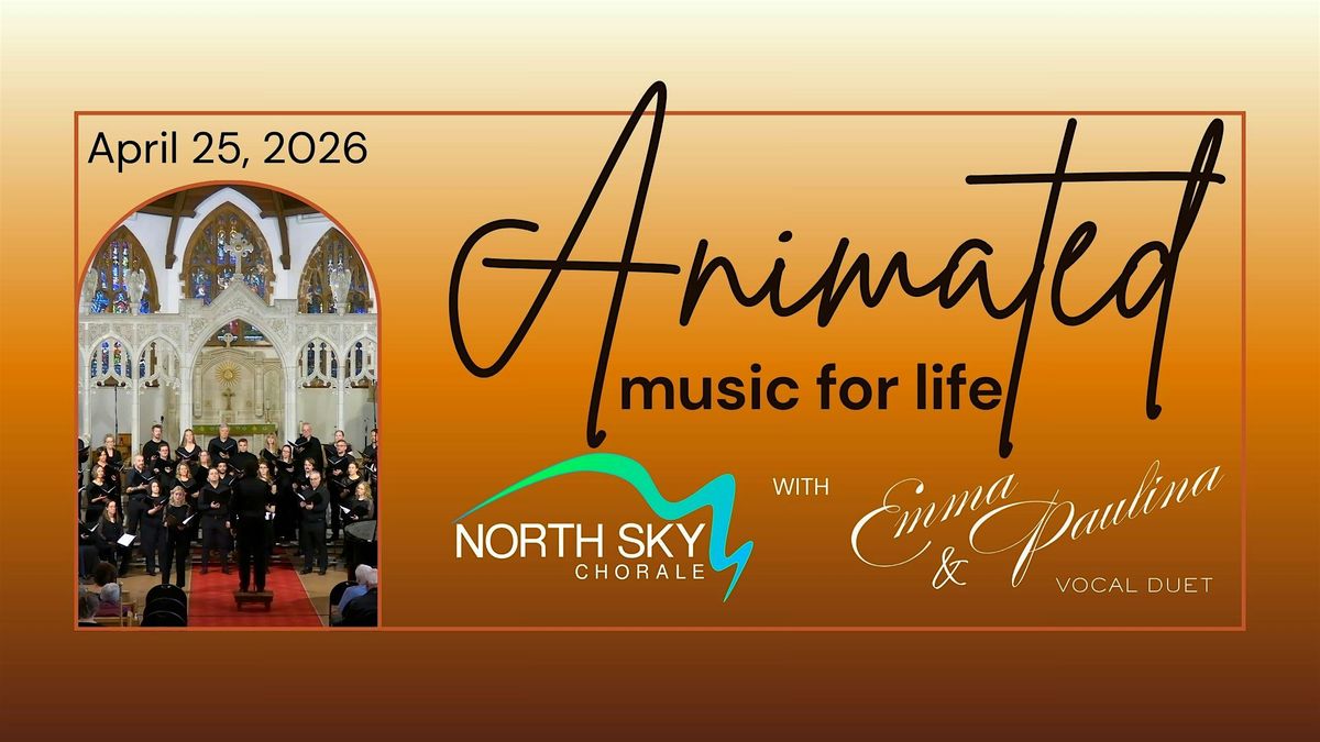 Settle in for an evening filled with rich harmony, heartfelt performances, and unforgettable moments at ANIMATED - music for life. This spring concert highlights the rich choral art of NORTH SKY CHORALE with the YXE Quartet (strings) and featured guests EMMA & PAULINA (vocal duet).