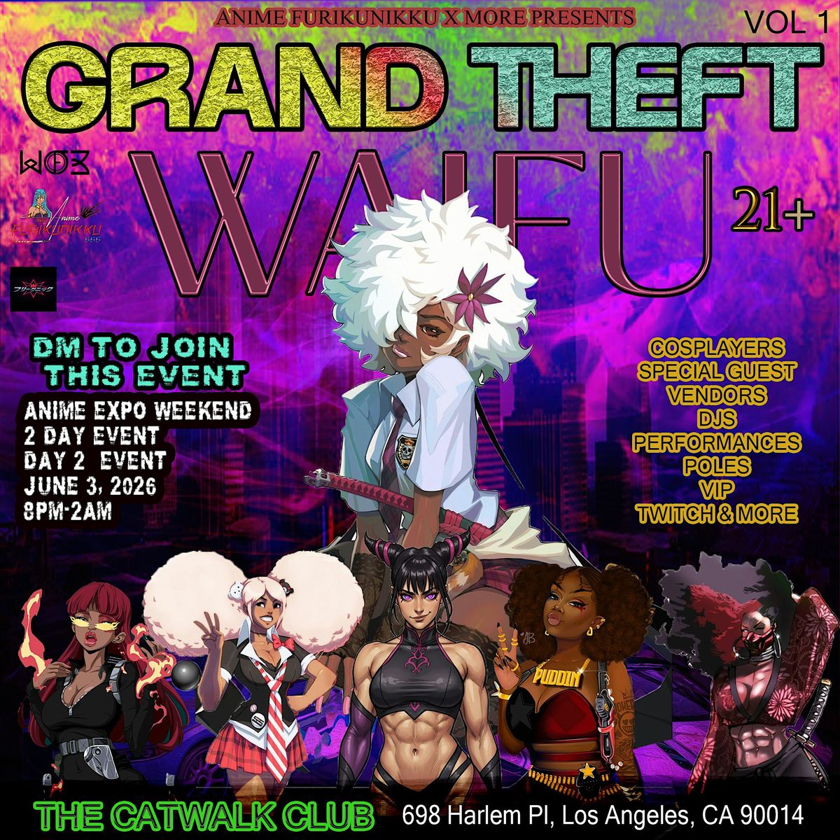 A high-energy nighttime anime con + after-party featuring elite cosplayers, DJs, dancers, vendors, performances, mic drops, and special guests. GTA WAIFU brings together rising creators and upper-rank talent in a free, safe networking space with nonstop vibes.