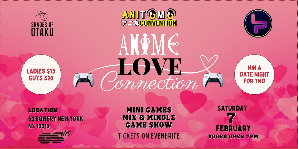 🩷Are you ready to win the heart of another?! AniTOMO presents a night filled with love and laughs! This year we're kicking the festivites off with our Love Connection Game Live Show where you can prove if you're the perfect partner or friend! You'll be able to put your skills to the test as we mix & mingle with a speed dating extravaganza, and keep your eyes peeled for a heart racing suprise you don't want to miss! As always, expect amazing prizes, raffles, and giveaways just for attending and participating at the event. Be sure to check out the awesome gaming lounge while you're here and our signature anime drink KisuKisu💋.