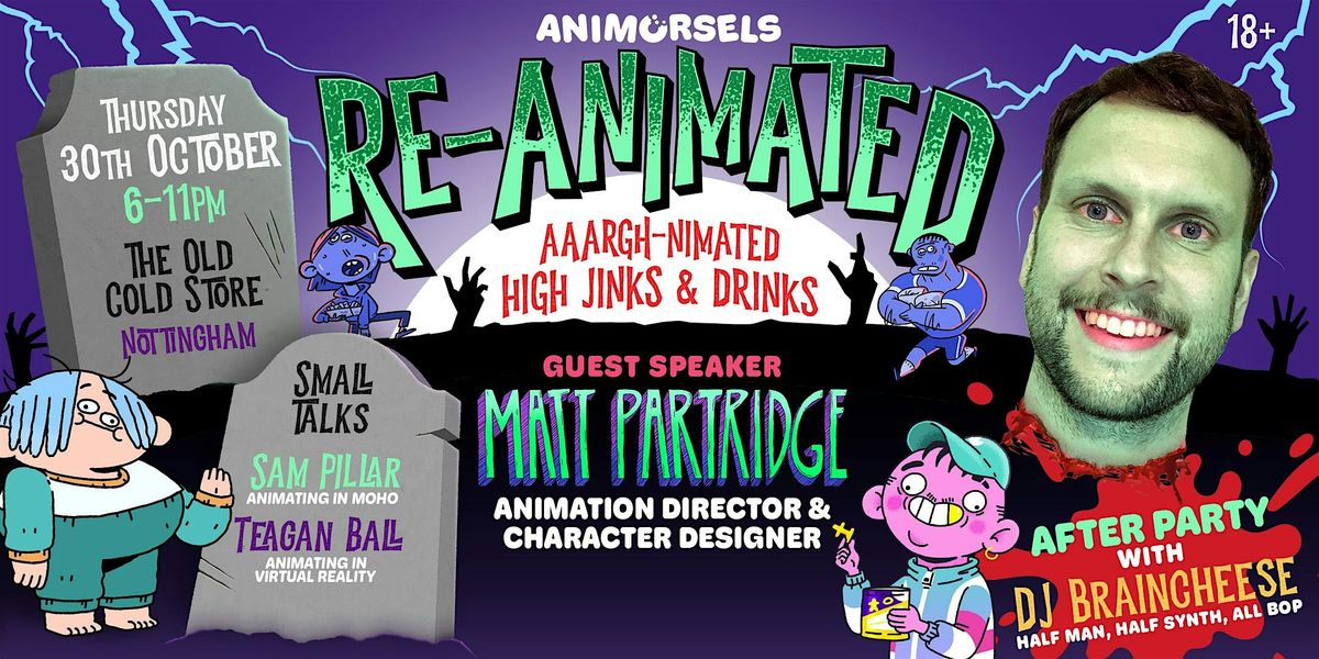 We'll be at The Old Cold Store (it's definitely haunted) in Nottingham with lots of ghoulish short animations and a talk from Matt Partridge an animation director and character designer working with clients such as Nickelodeon, Netflix, Pepsi & Adidas. Plus small talks from Sam Pillar and Teagan Ball, a Quick Quiz with some great prizes and lots of other fiendish surprises!