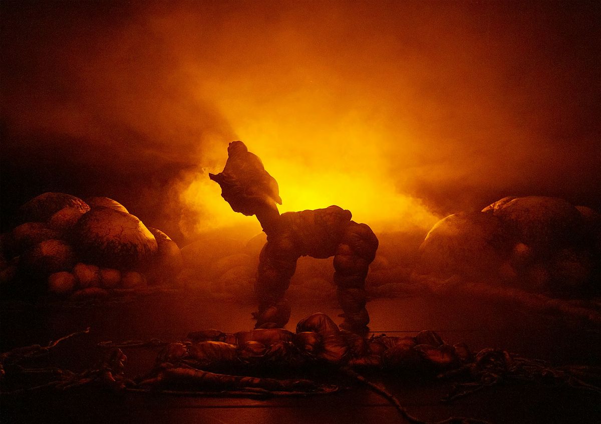 is a future folkloric world of dance-theatre, diasporic club cultures, projections, sound design and elaborate craft.