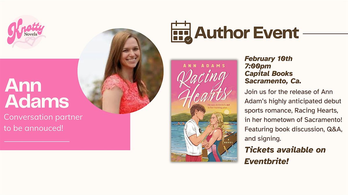 Join us for an event with local debut romance author Ann Adams for her release day event! Talk all things Racing Hearts with Ann, followed by a Q&A and book signing.