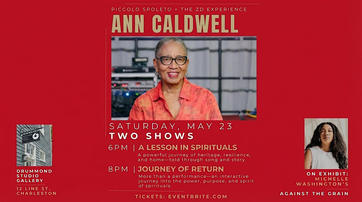 Piccolo Spoleto and The ZD Experience present an evening with Ann Caldwell at Drummond Studio Gallery. Two shows, two experiences, one unforgettable night on Charleston's Eastside.