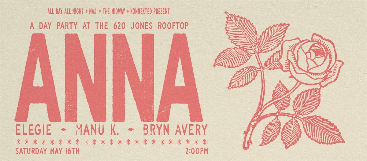 Lisbon based-Brazilian artist, ANNA, plays a day party at the 620 Jones Rooftop in San Francisco on Ma6 16th. Join us at one of the most beautoful settings the city has to offer.