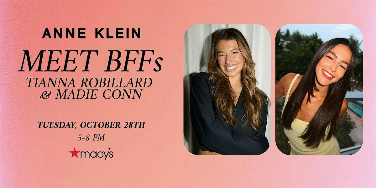 Join us Tuesday, October 28th from 5-8pm for an unforgettable evening with #BFF Influencers Tianna Robillard and Madie Conn — live, in person! Celebrate Breast Cancer Awareness Month with Anne Klein, Macy’s, and Northwell Health as we spotlight friendship, empowerment, and self-care.
