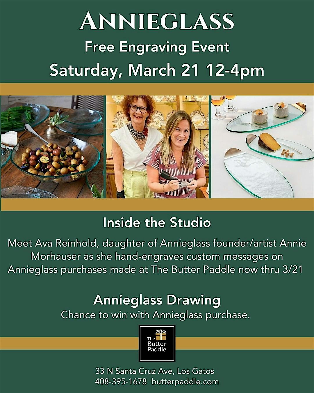 Join us at The Butter Paddle for a special Annieglass Complimentary Engraving Event! ✨