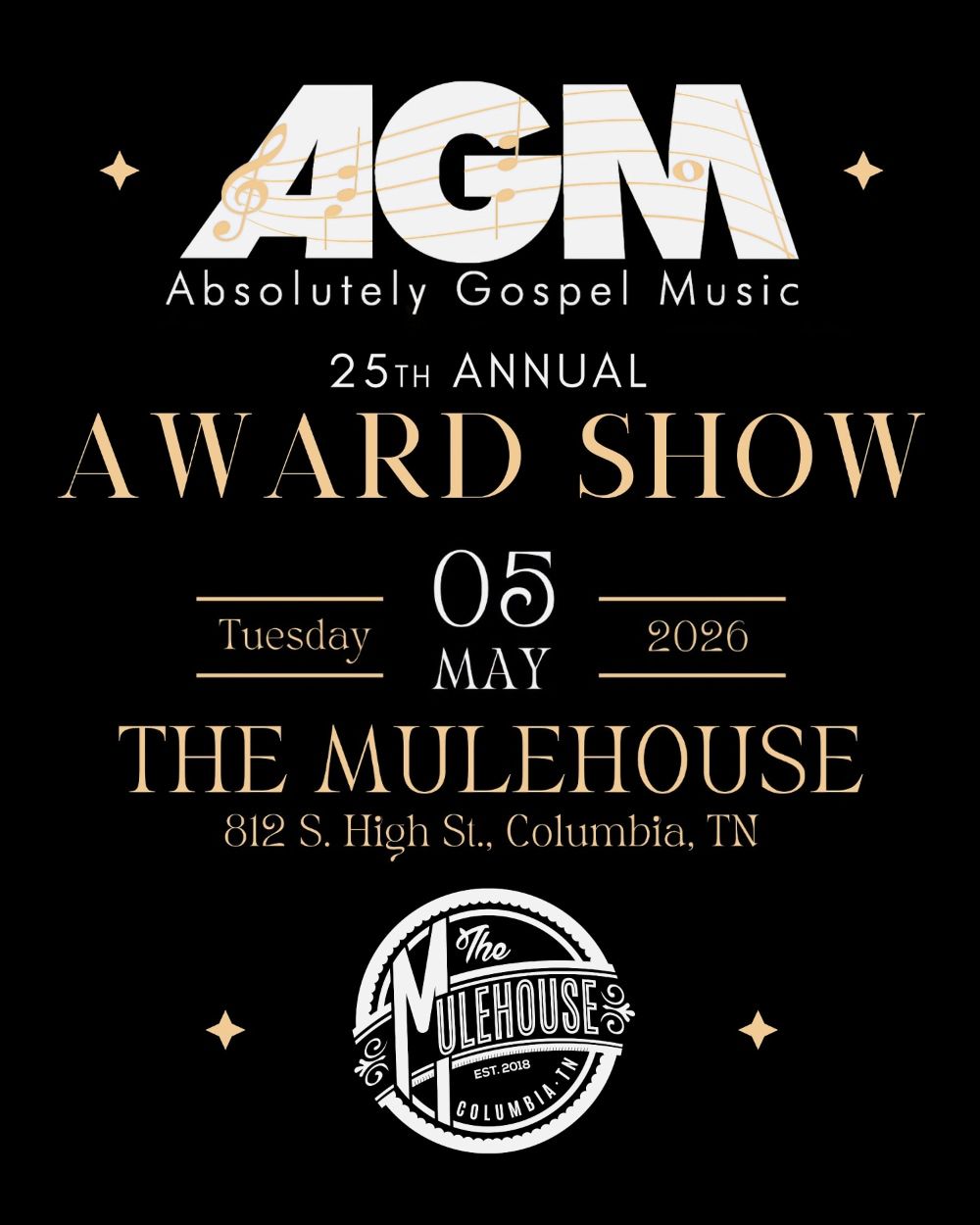 ✨ Experience the magic of Annual Absolutely Gospel Awards Show, where moments become memories that last a lifetime! 🏛️ The iconic The Mulehouse in Columbia, TN sets the perfect stage for an unforgettable celebration on May 4th, 2026 at 06:00 PM. 🌟 It's been a curated experience that brings together the best of entertainment and innovation, creating an atmosphere of wonder and excitement. From the moment you arrive, you'll be immersed in a world where the ordinary transforms into the extraordinary. 🎊 Book early to secure your place in what promises to be an event that will be talked about for years to come!http://maps.seatics.com/TheMulehouse_Endstage_2026-04-25_2026-02-26_0213_02262026_024430_SVGC_tn.png