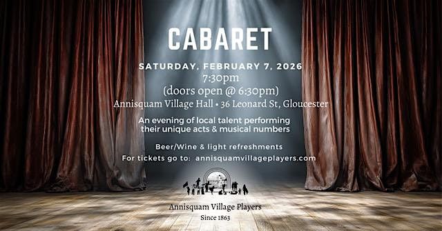 Wine, beer, light refreshments, and hors d’oeuvres will be served as friends and neighbors attempt to make you smile, laugh, and maybe even cry (or roll your eyes!). Tickets are $40 and can be purchased online at www.annisquamvillageplayers.com. Doors open at 6:30 p.m.