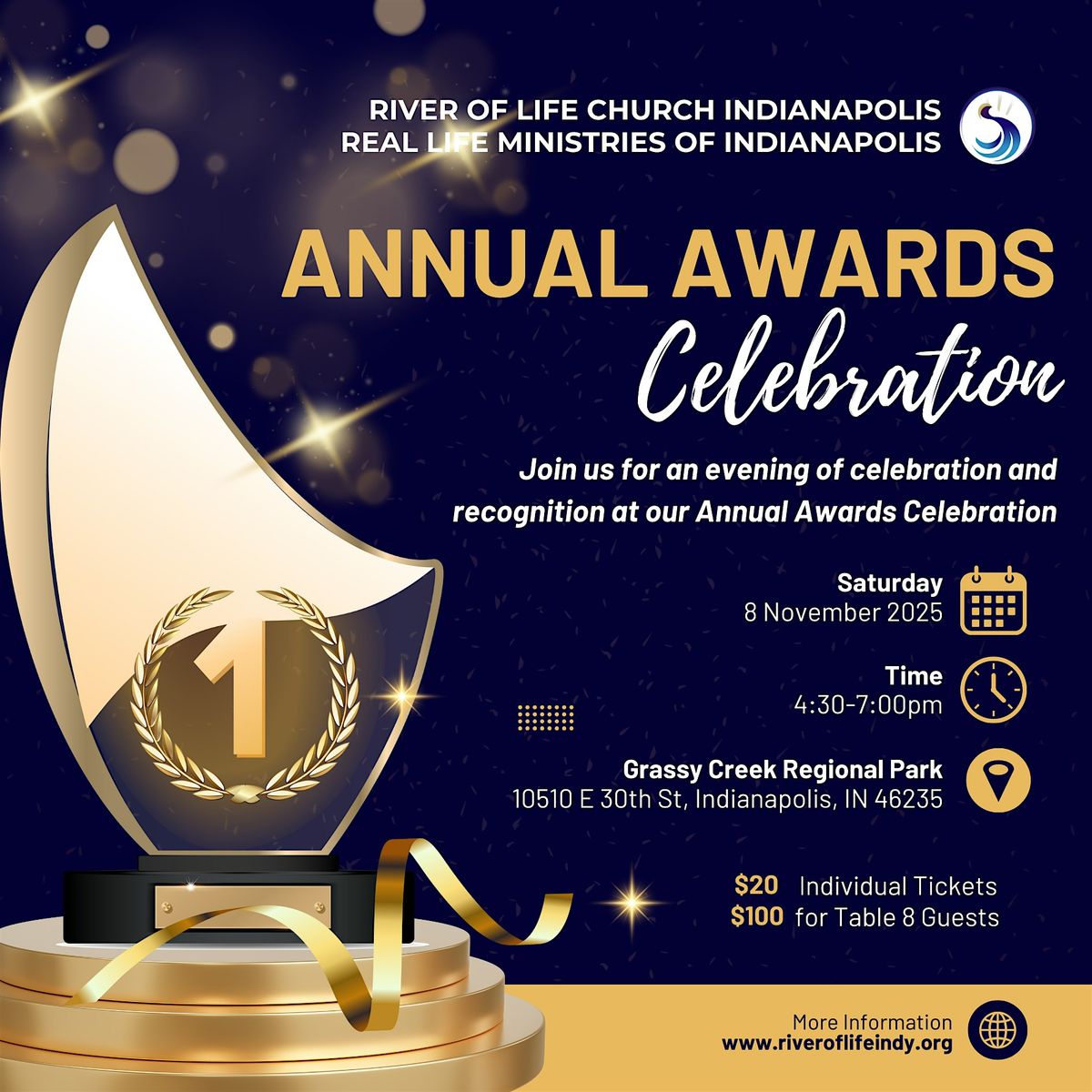 Join Us for an Evening of Celebration!River of Life Church and Real Life Ministries invite you to a special evening honoring outstanding i