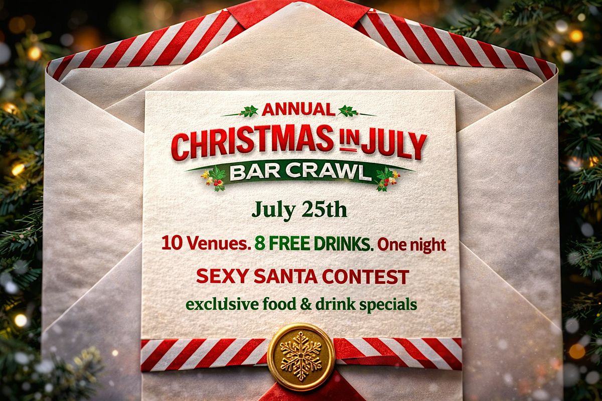 Join us for the Annual Christmas in July Bar Crawl, a 12-hour holiday party packed with festive energy, exclusive drink specials, and nonstop bar hopping through 10 of the best venues in the city.