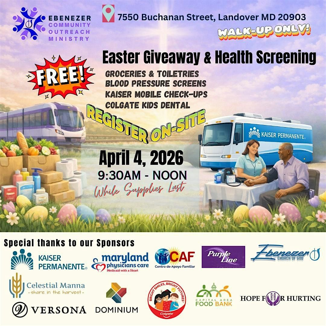 Join us for our Annual Community Easter Giveaway for FREE Health Screens, Food,Toiletries, Clothes, while supplies last.About this Event