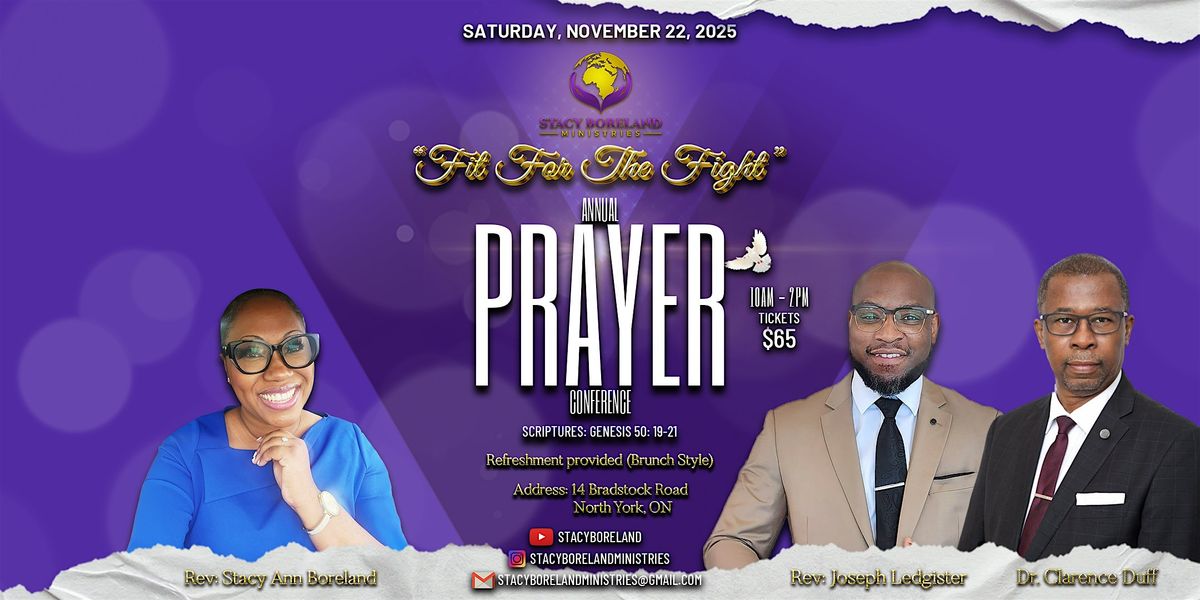 Stacy Boreland Ministries invites you to join us for our Annual Prayer Conference under the powerful theme: “Fit For The Fight” (Genesis 50:19–21).