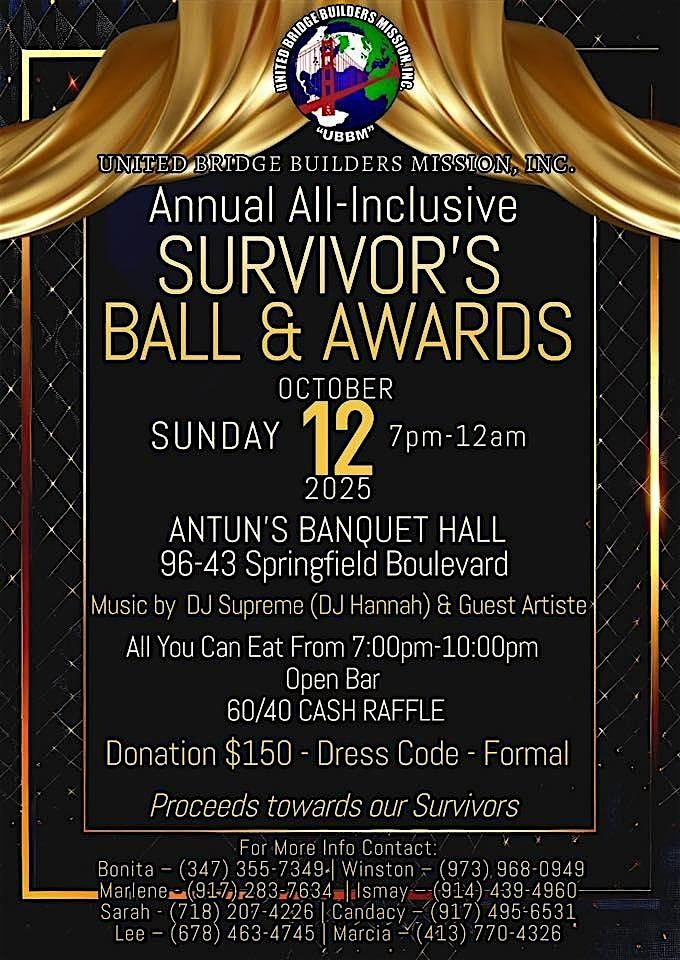 UBBM Annual Survivors Ball is a charitable event that allows us to celebrate the resilience of our Survivors, honors our Community Heroes while we enjoy a classic evening with great entertainment & ambiance @ Antun's Banquet Hall 96-43 Springfield Blvd Queens Village NY 11429.