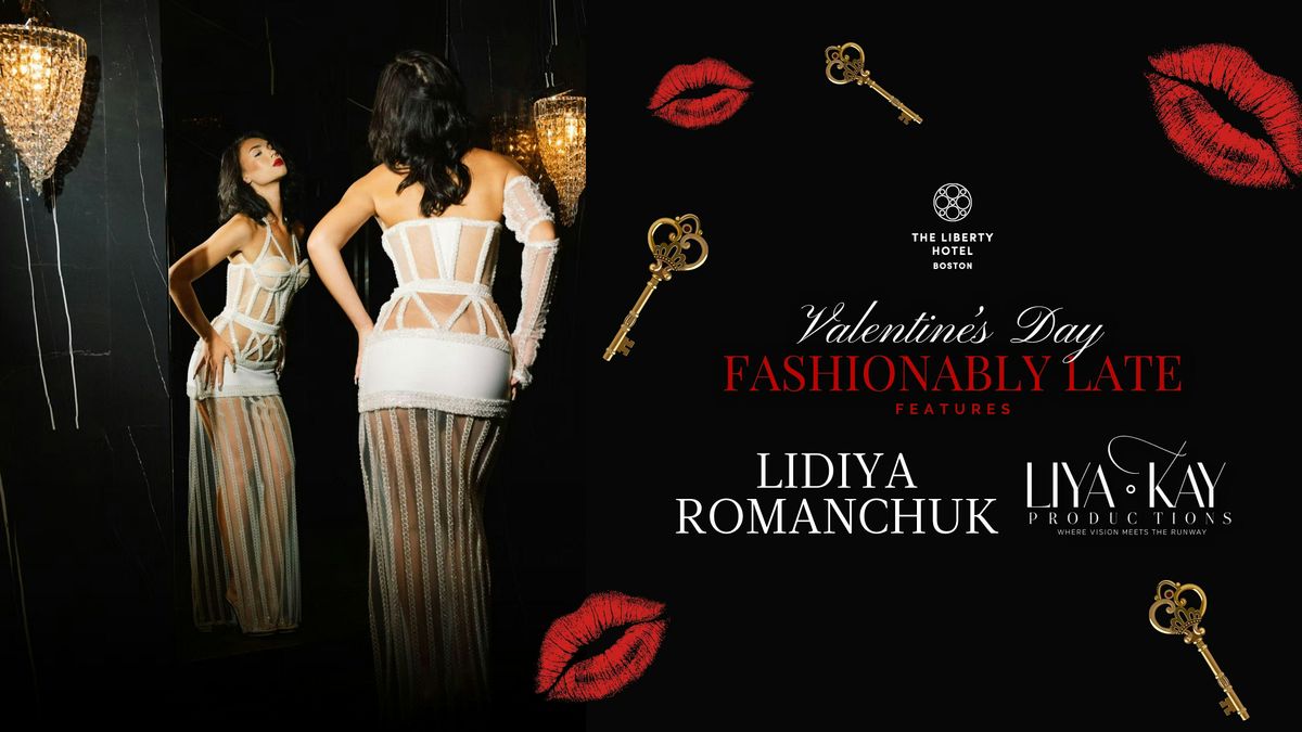 Immerse yourself in an evening of allure at our annual Valentine's Day Fashionably LATE Fashion Show, featuring sexy looks from Boston's , on Thursday, February 12th at 9 pm. Experience the enchantment as our fashion show comes alive with the perfect blend of sophistication and sensuality, showcasing the finest hand-crafted pieces from Lidiya's curated collection. Join us for a celebration of love, glamour, and the captivating offerings from Lidiya Romanchuk, promising an unforgettable night.