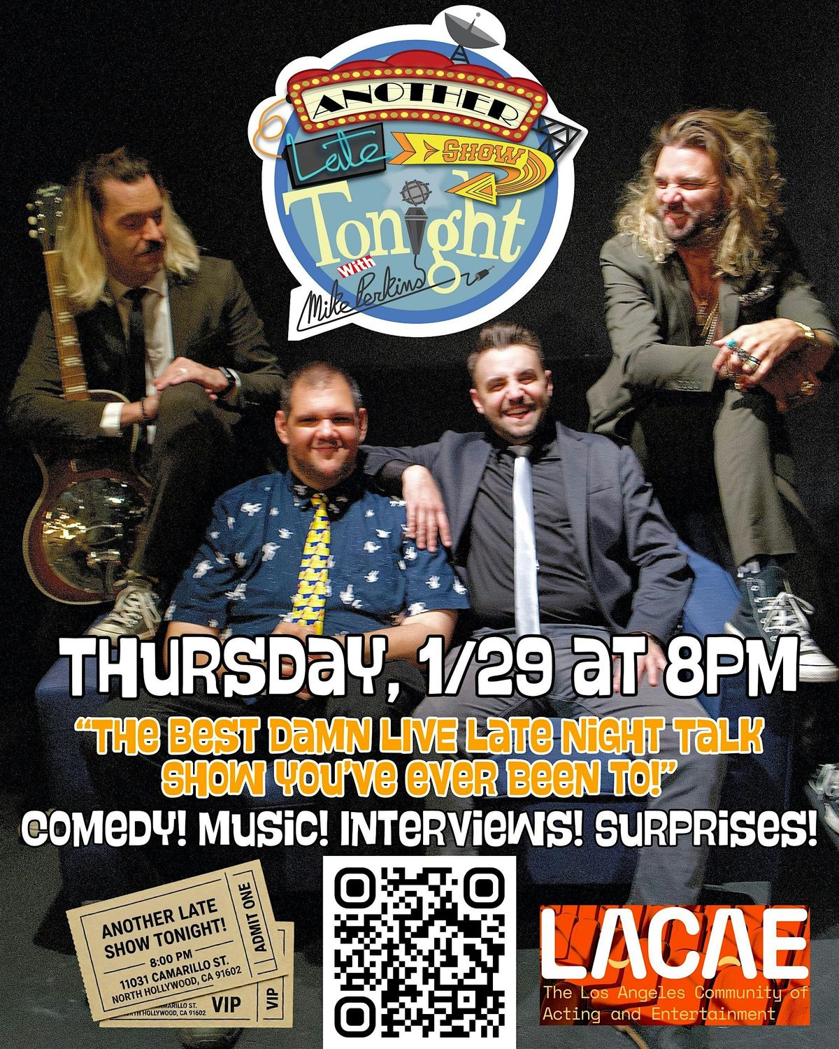 A night filled with LIVE stand-up comedy and interviews with touring headliners from TV and all around the country, sketches and videos, even fun games that the audience can be a part of if you want to have even more fun with Mike and his house announcer and comedian partner in crime, Paul Brodo! And of course LIVE music from up and coming singers and bands, and from our amazing comedy house band, The SHOW with Adam and Sean!