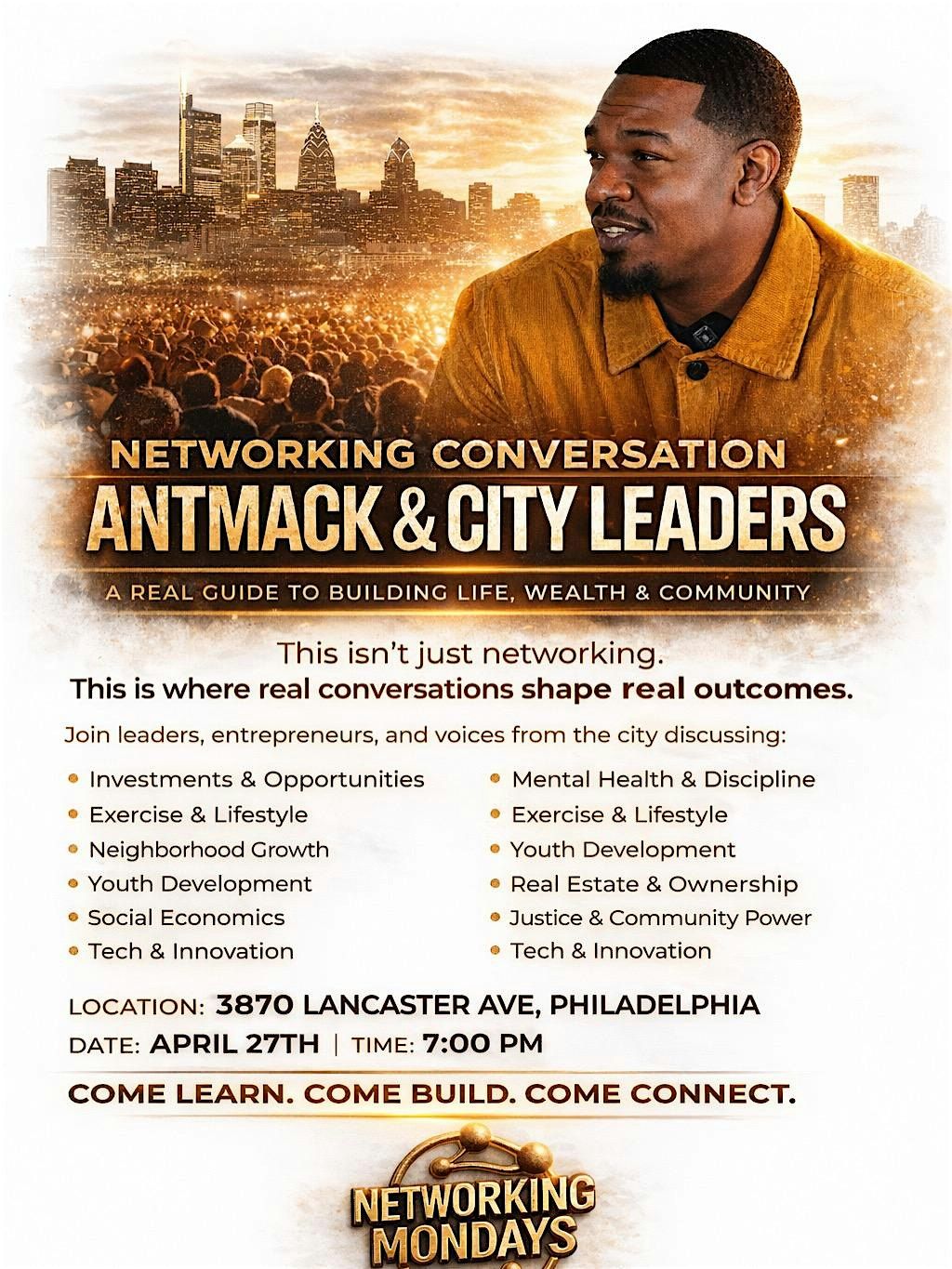Join us for an impactful Networking Mondays conversation featuring Antmack & City Leaders—a real discussion on building life, wealth, and community.