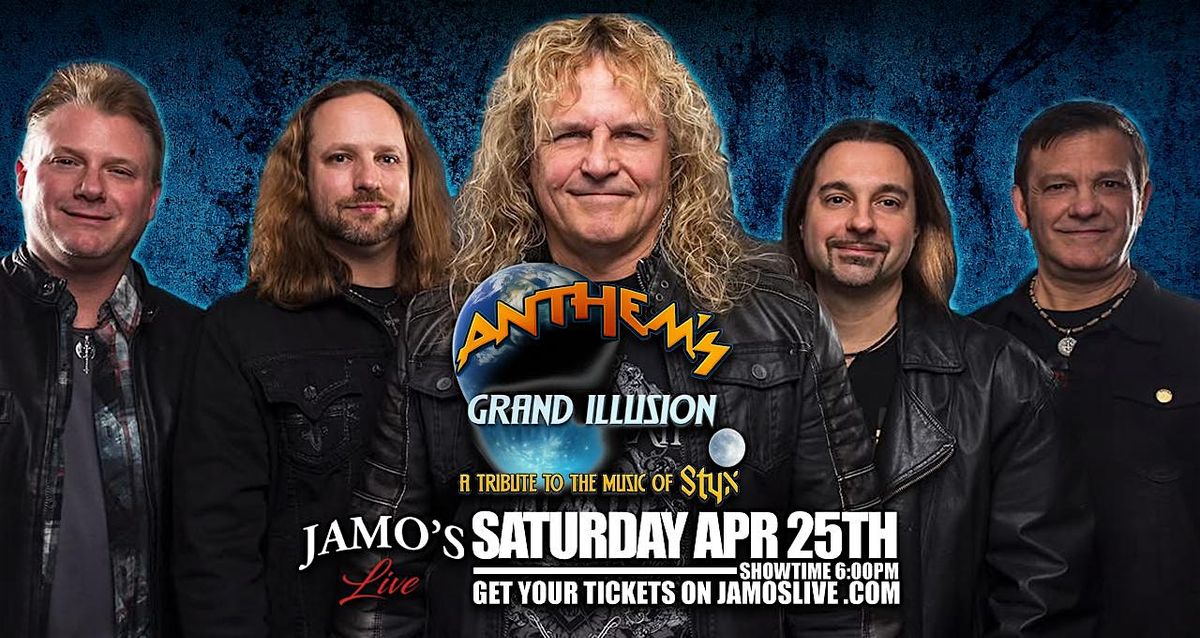 Get ready for an awesome night with Anthem's Grand Illusion bringing the classic sounds of Styx live at Jamo's Live! Join us on April 25, 2026 at 6:00 PM (Central Time) for a fun, energetic show full of your favorite hits. Whether you're a longtime fan or new to Styx, this tribute band will have you rocking all night. Don't miss out on this great in-person event!