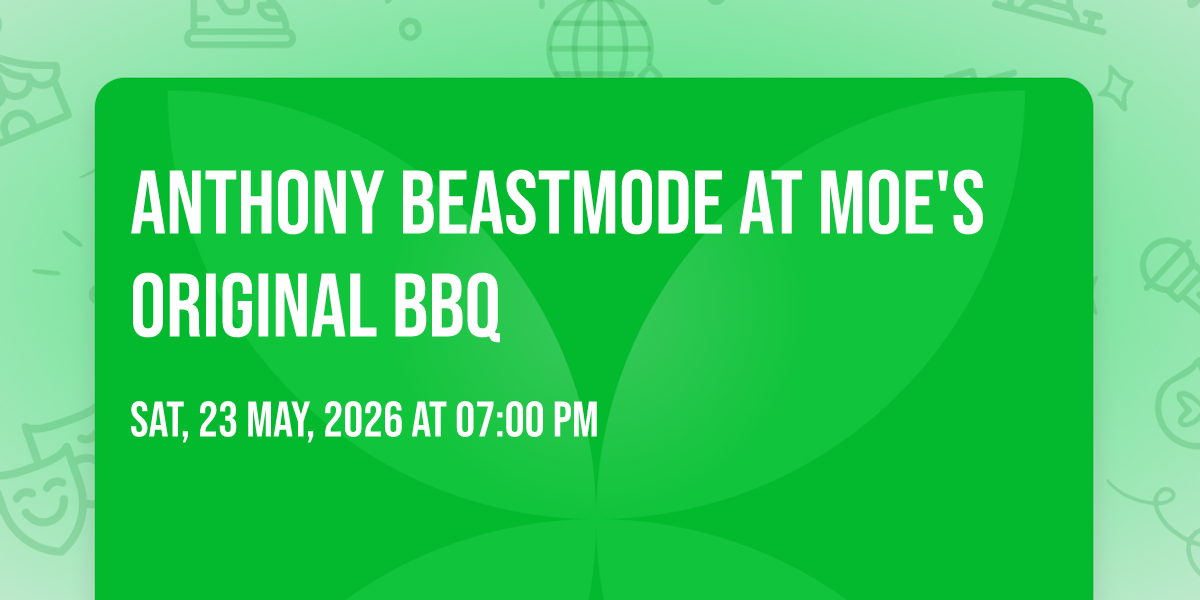 ✨ Enter a world of endless possibilities at Anthony BeastMode at Moe's Original BBQ, where every moment tells a story! 🏛️ The stunning Moe's Original BBQ in vibrant Englewood, CO transforms into a realm of wonder on May 23rd, 2026 at 07:00 PM. 🌟 They have crafted an experience that goes beyond the ordinary, combining elements of surprise, delight, and pure entertainment. Every detail has been thoughtfully considered to ensure your journey with us is nothing short of extraordinary. 🎯 Join fellow adventure seekers and memory makers in this celebration of imagination and innovation. 🎊 Reserve your spot today and be part of something truly special!