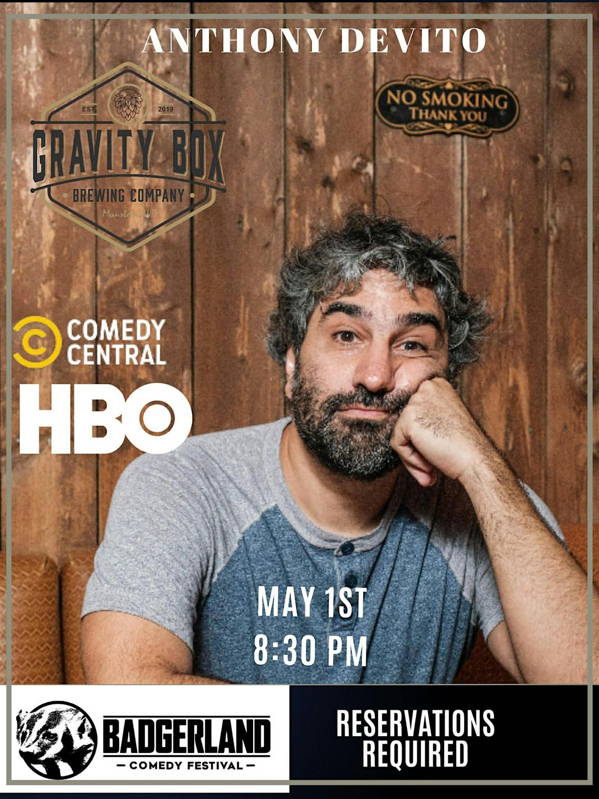 National touring headliner Anthony DeVito headlines night #1 of the Badgerland Comedy Festival at Gravity Box Brewing Co.!