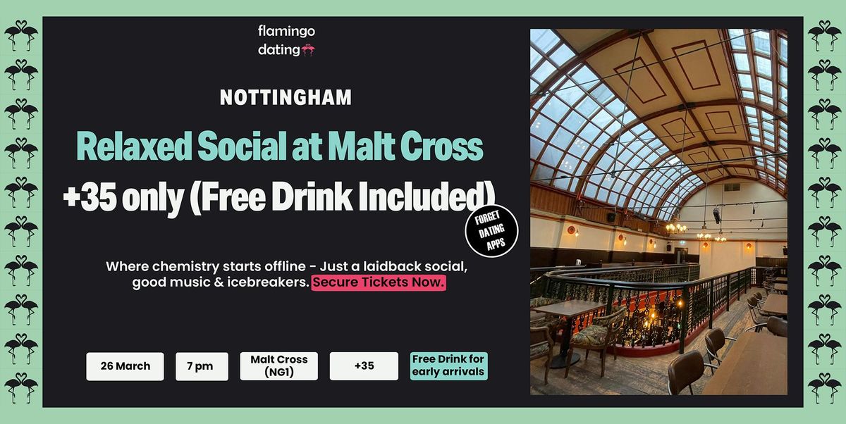 Flamingo Dating has teamed up with the iconic venue Malt Cross to bring you this event! Held in a private section upstairs. They are giving a FREE prosecco or soft drink to anyone who arrives before 7.30 pm.