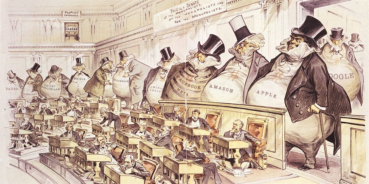 Illustration by Lukas Muller-Wunsch adapted from “The Bosses of the Senate” political cartoon by Joseph Keppler, first published in Puck, circa January 23, 1889. Via Wikimedia Commons.