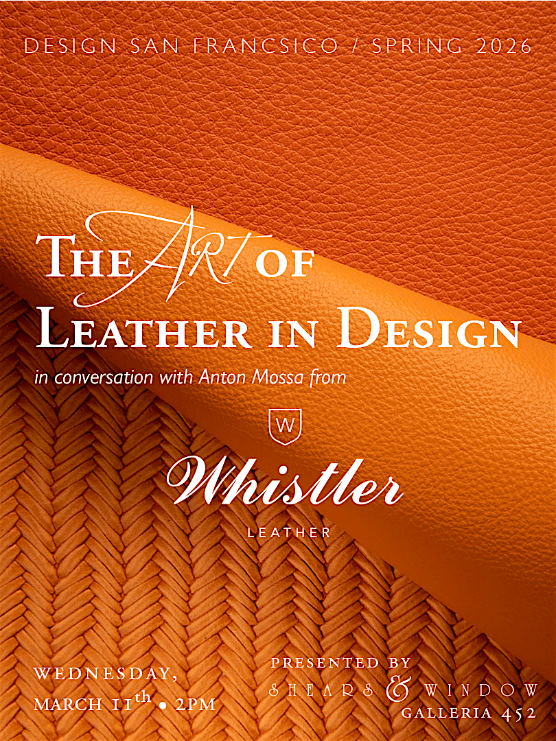 On March 11th at 2pm, we welcome Anton Mossa, Head of US Sales for Whistler Leather for an intimate conversation on one of design’s most elemental materials.
