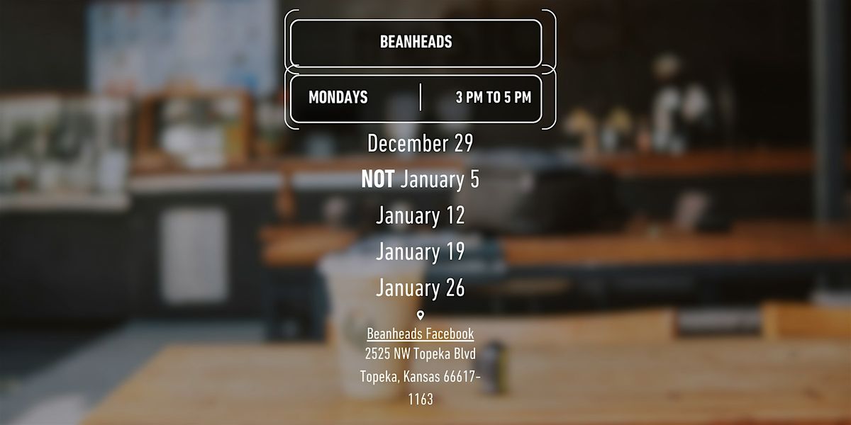 Beanheads, 2525 Northwest Topeka Boulevard, Topeka, United StatesEvent Location & Nearby Stays: