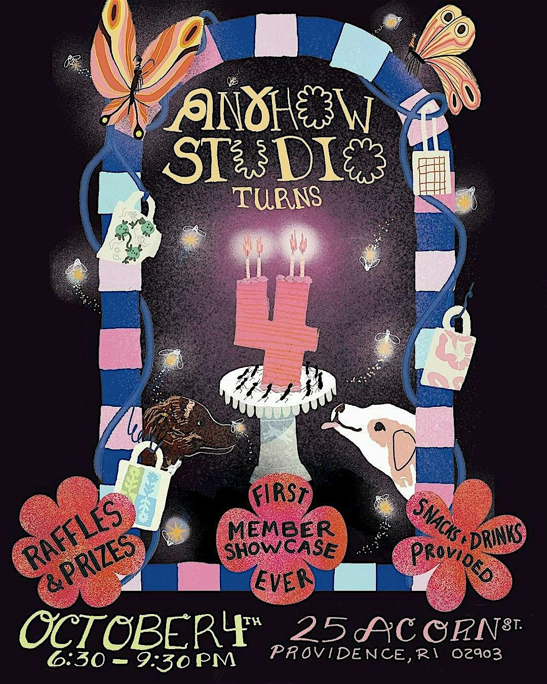 Come celebrate with us as Anyhow Studio Turns 4! 🎉Our studio has been at it for four amazing years, and we want to share this milestone with all of you. All are welcome! Bring your Friends & Family but please leave your dogs & pets at home :)