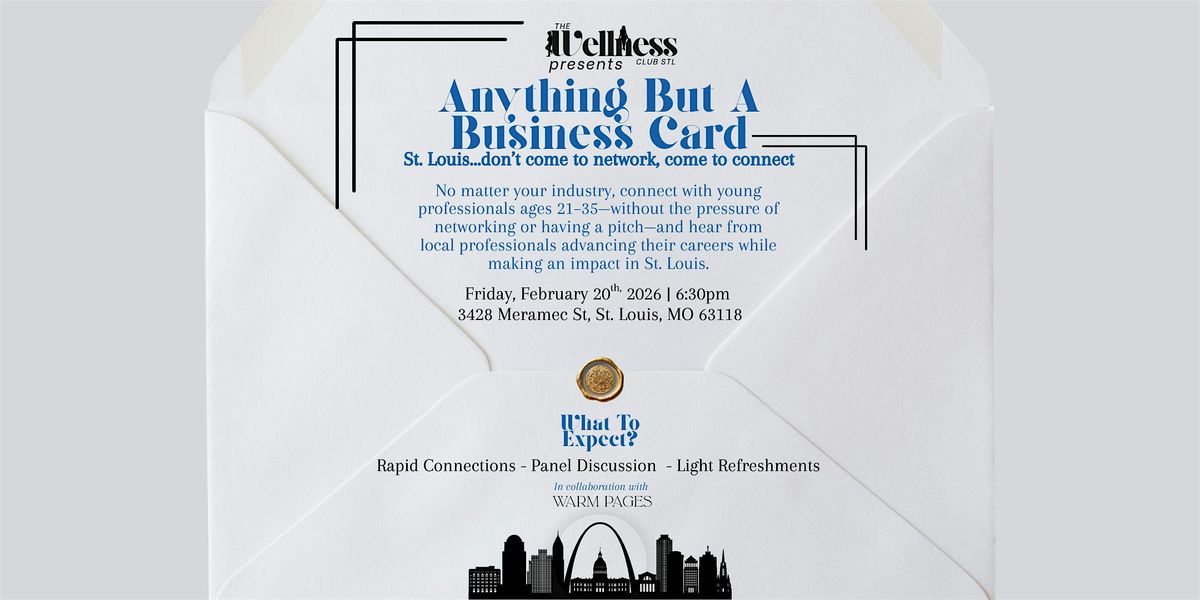 Anything But a Business Card is a fresh take on professional connection without the pressure, the pitch, or the stiff networking energy. Whether you’re in tech, the arts, education, healthcare, nonprofit, entrepreneurship, government, or a field that doesn’t fit into a box, this event creates space for genuine connection among young professionals aged 21–35 in St. Louis.