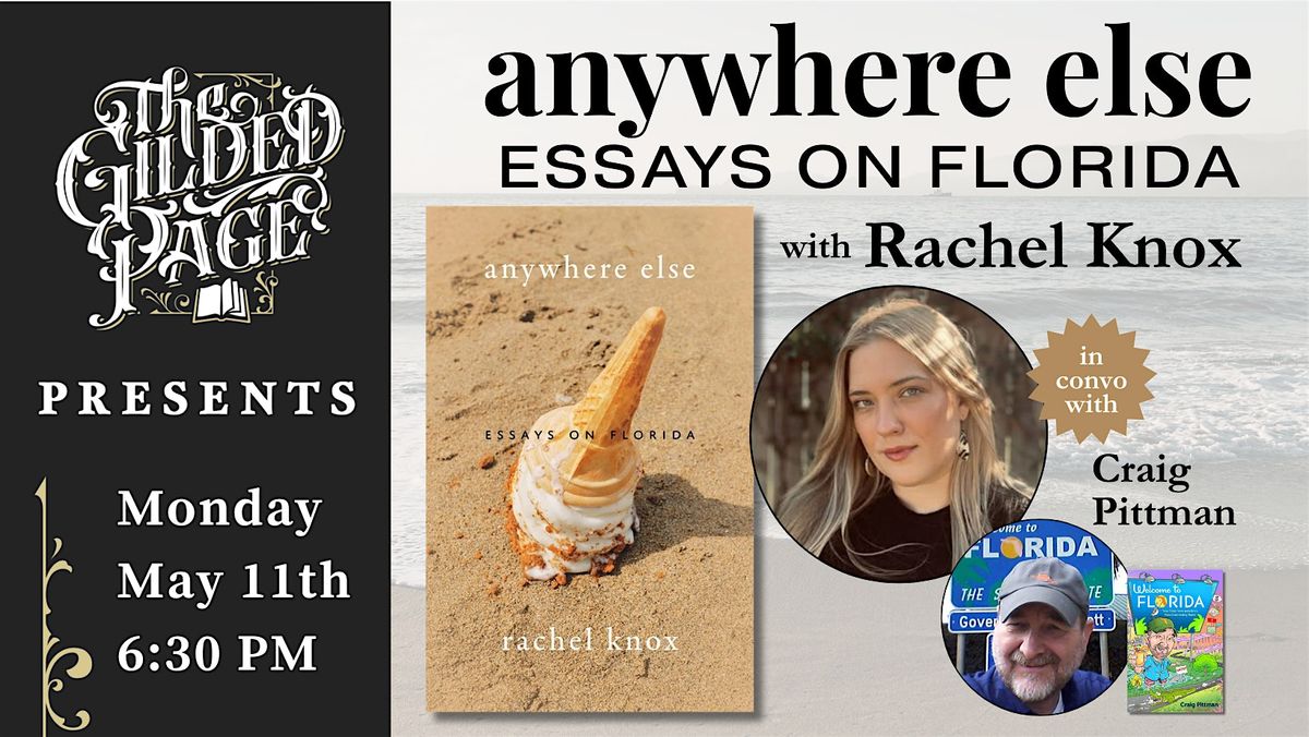 Florida and pop culture are a magnetic, viral match. From true crimes on social media to spring break movies to Miami Vice, the state has been served up for the rest of the world as a place of swamp things, serial killers, beach bums, teen girls, and dead poets. In Anywhere Else, Rachel Knox weaves her own story around the media caricatures, digging deeper into what it's like to be from a "wild" place--and who gets to decide what that means.