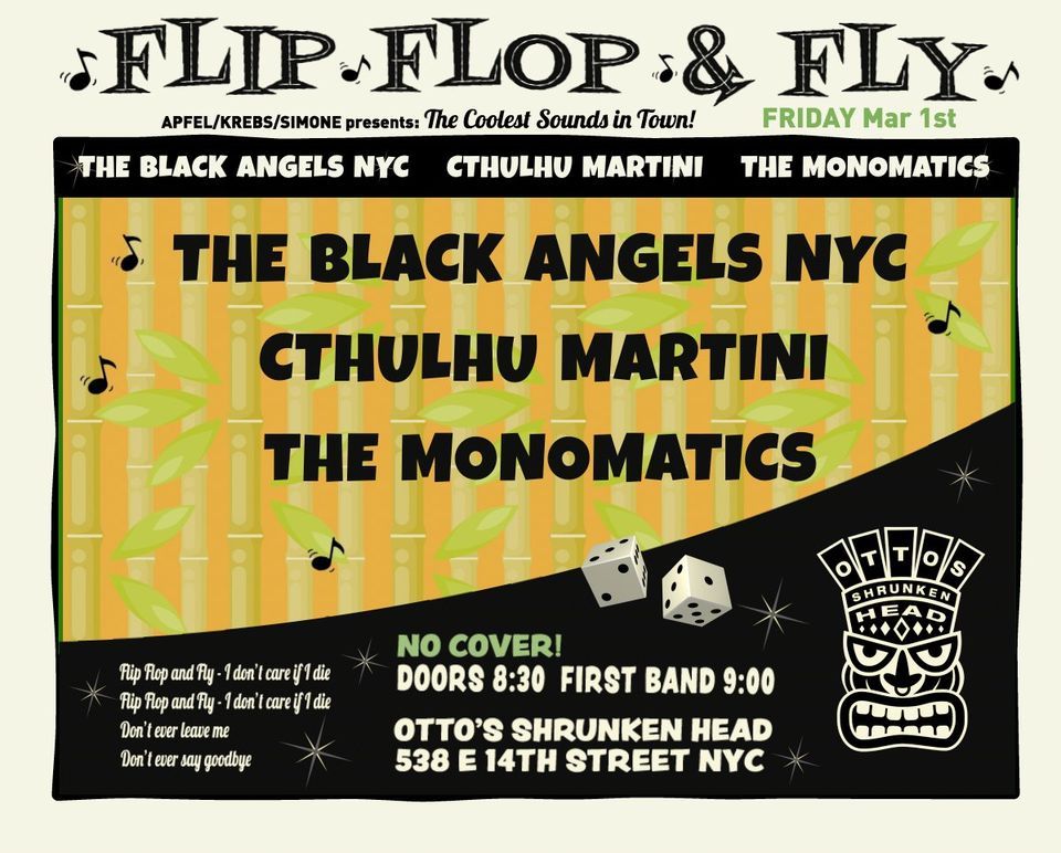 It's the first Friday of the New Year so it's time to FLIP FLOP & FLY! That's right, come down to OTTO'S SHRUNKEN HEAD, have a few Tiki drinks, put on your dancing shoes and check out the coolest sounds around! It's where all the Hip People meet! Dig the scene baby! Here's this month's line up:9:00- THE MONOMATICS (1960's Garage & Noir Surf Instrumental Trio) https://www.instagram.com/themonomatics/