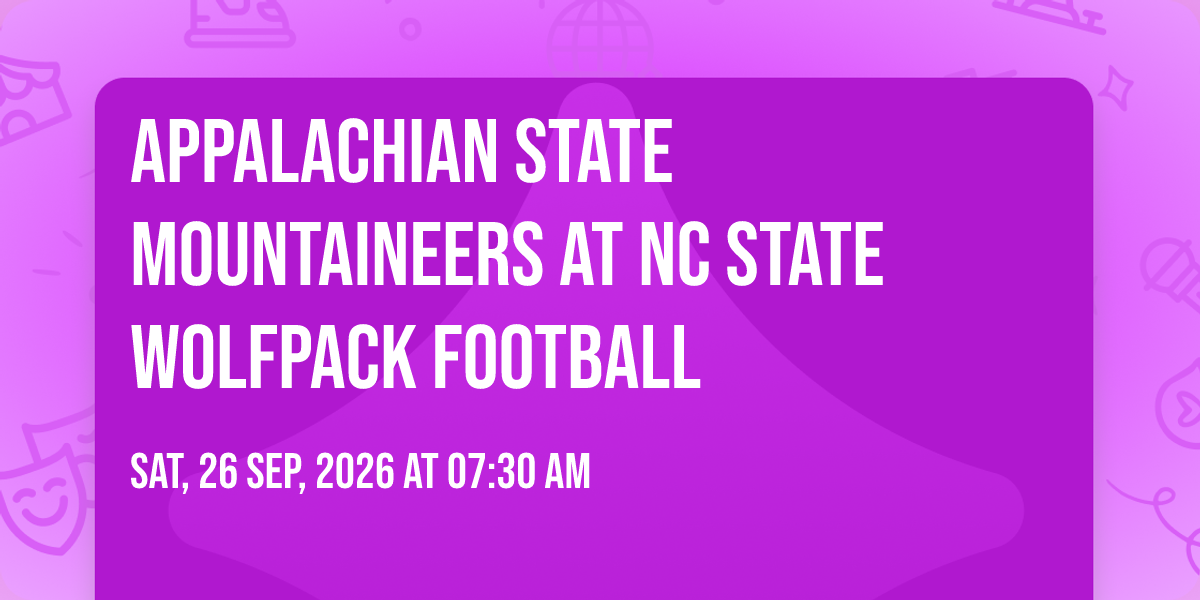π Location: 35.801, -78.719β¨ Experience the magic of Appalachian State Mountaineers at NC State Wolfpack Football, where moments become memories that last a lifetime! ποΈ The iconic Carter-Finley Stadium in Raleigh, NC sets the perfect stage for an unforgettable celebration on September 26th, 2026 at 07:30 AM. π It's been a curated experience that brings together the best of entertainment and innovation, creating an atmosphere of wonder and excitement. From the moment you arrive, you'll be immersed in a world where the ordinary transforms into the extraordinary. π Book early to secure your place in what promises to be an event that will be talked about for years to come!