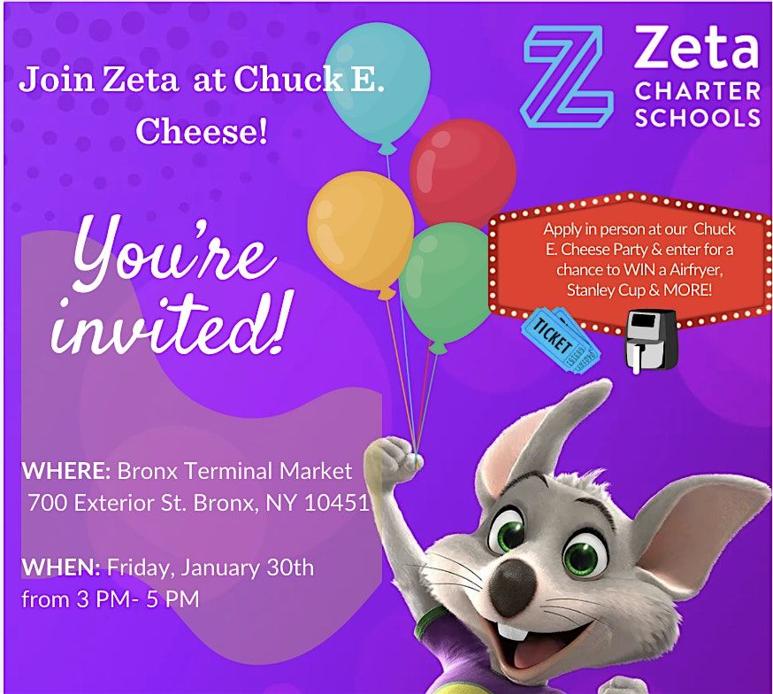 Apply in at Person at Zeta Charter Schools Party @ Chuck E. Cheese!