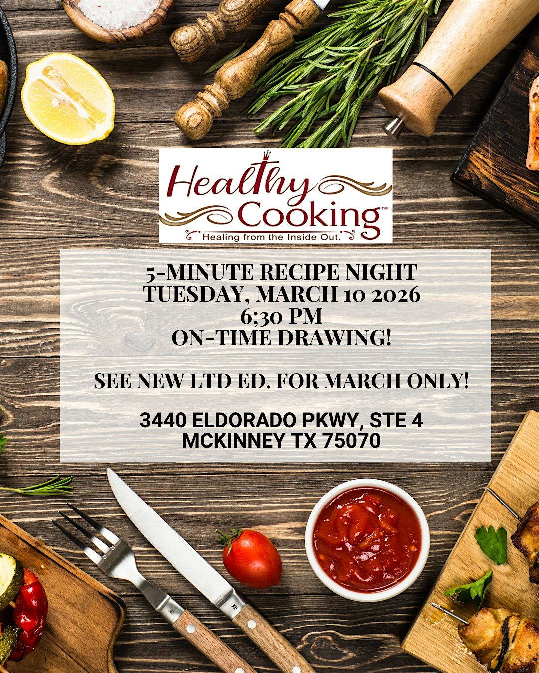 If you have days you forget to thaw or just don't feel you have time to cook...Instead of high priced restaurant meals with all the wait time, why not learn how to do tasty 5-minute recipes at home that are ready in about 30 minutes. Tickets include on-time drawing and sampling from the buffet of multiple dishes at the end! Fun, Fast & Fabulous!