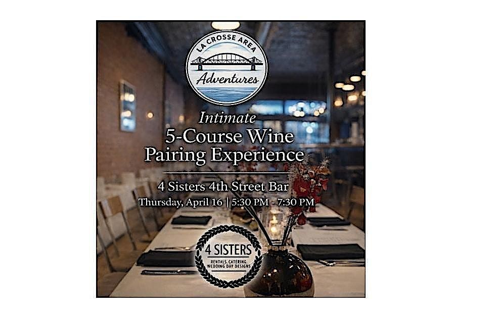 Join us for a private La Crosse Area Adventures Foodie Experience at 4 Sisters 4th Street Bar, featuring a curated 5-course dinner with wine pairings.