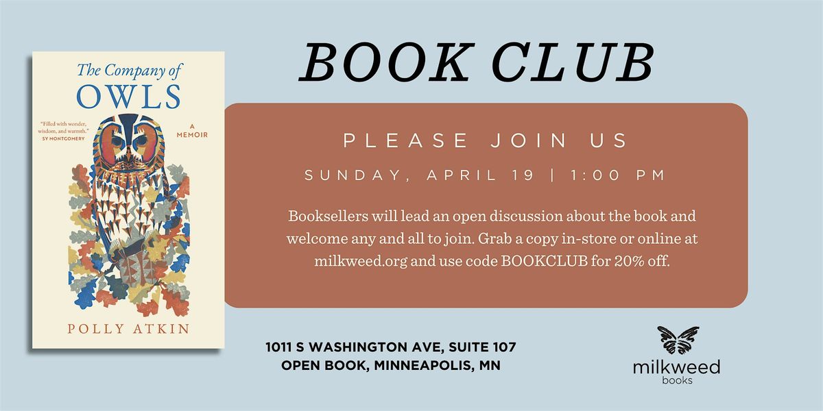 Booksellers will lead an open discussion of the book with topics and questions and encourage anyone to attend. Pick up the book in-store or online at milkweed.org and use code BOOKCLUB to receive 20% off ahead of the club meeting.