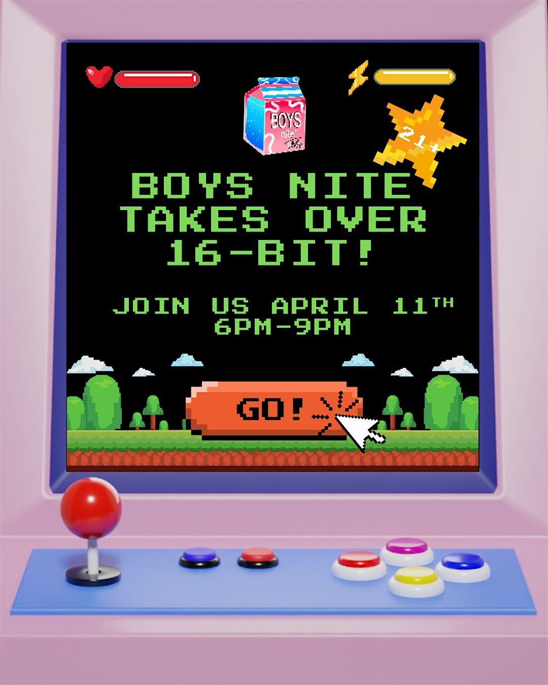 Boys Nite, hosted by the Connie Chapman Foundation, is a monthly free event open to humans that identify as trans masc ages 18+ or 21+ depending on the venue.